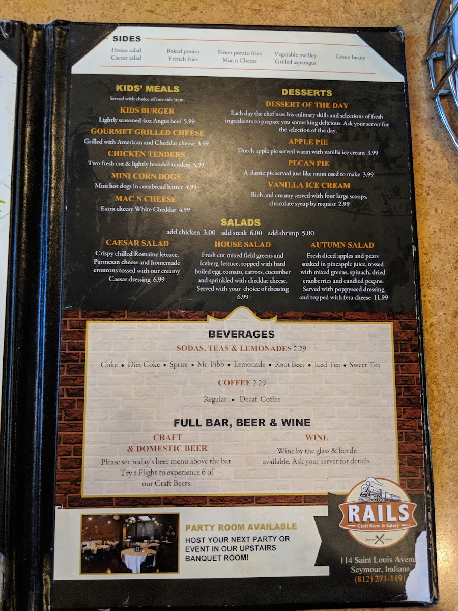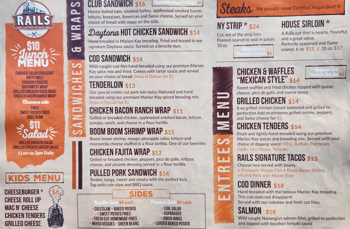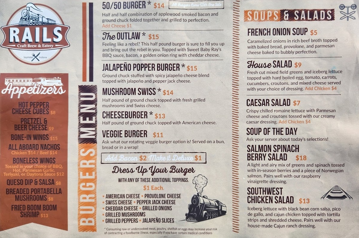 The menu at Rails Craft Brew & Eatery offers a well-rounded selection of classic American dishes served in a relaxed, approachable setting. It blends casual comfort food with thoughtful touches, making it easy to enjoy a laid-back lunch, a hearty dinner, or a casual evening with friends over craft brews and familiar favorites.