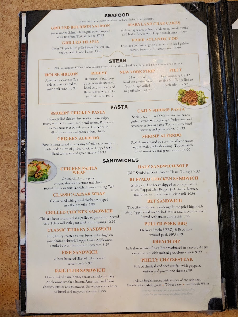 Families appreciate the thoughtful kids’ menu offerings, while those looking for something more substantial can enjoy comfort dishes like the sirloin steak or surf and turf specials. Overall, the menu encourages a laid-back experience with a variety of flavors that fit the easygoing vibe of this railroad-themed spot.